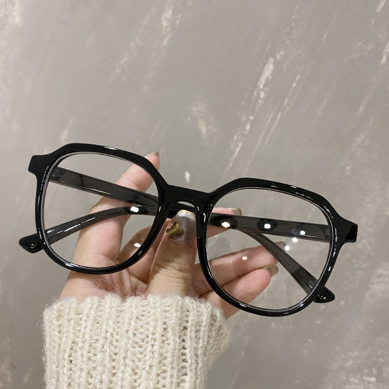 Round face black frame color glasses female blue-proof radiation proof myopia matrix in fracture flat mirror