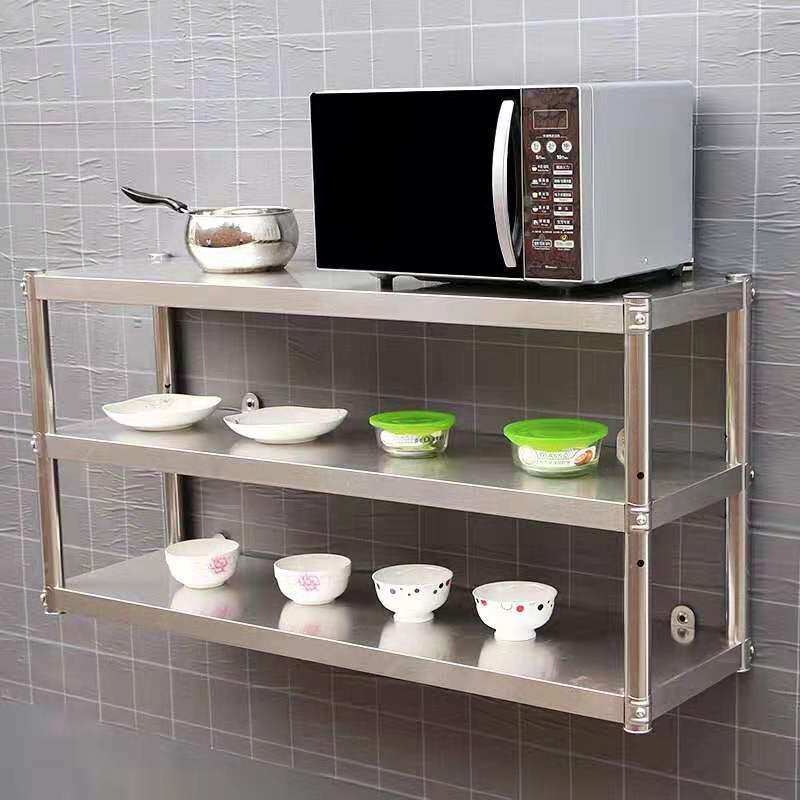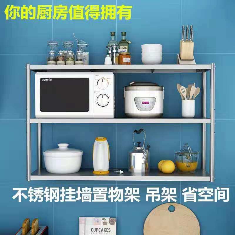 304 wall rack kitchen stainless steel double layer three-layer wall mount shelf bowl rack spice hanging wall rack pot hanger