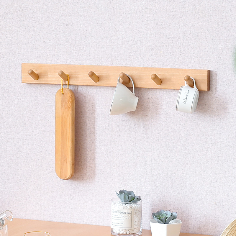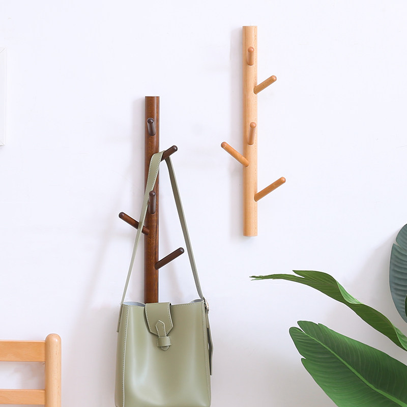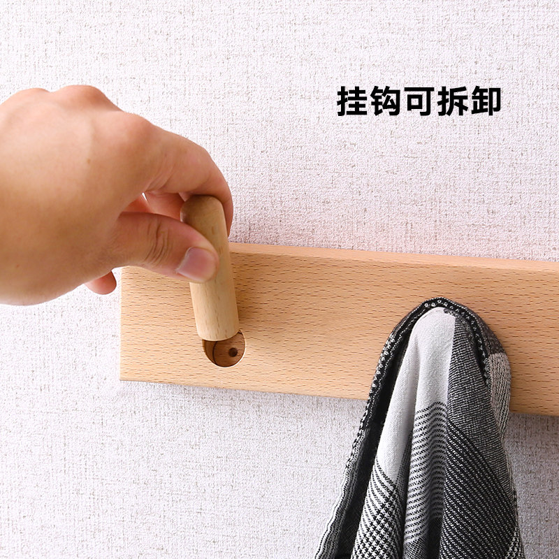 Wall coat rack solid wood Nordic hole-free bedroom coat hook small apartment multi-functional bathroom kitchen rack