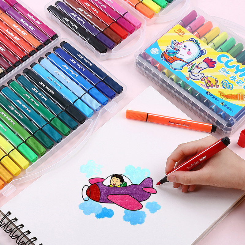 True color washable watercolor pen elementary school students with 36 colors children's professional art painting graffiti pen crayon 24 color baby kindergarten set wholesale triangle pole hand-drawn color pen