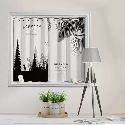 Finished short curtain Black tribute satin Net red ins Nordic simple modern living room bedroom non-perforated curtain shaped bay window