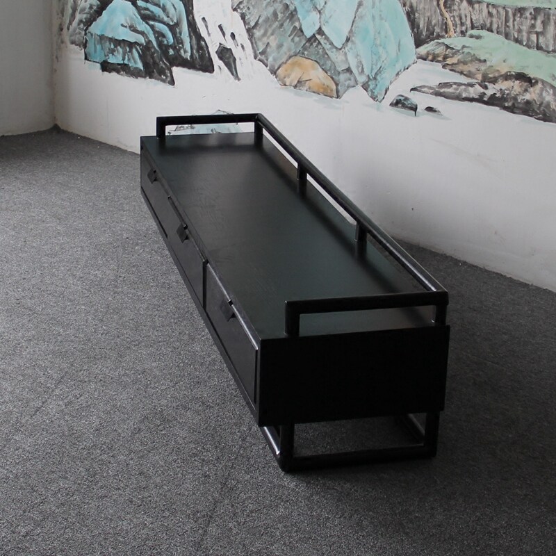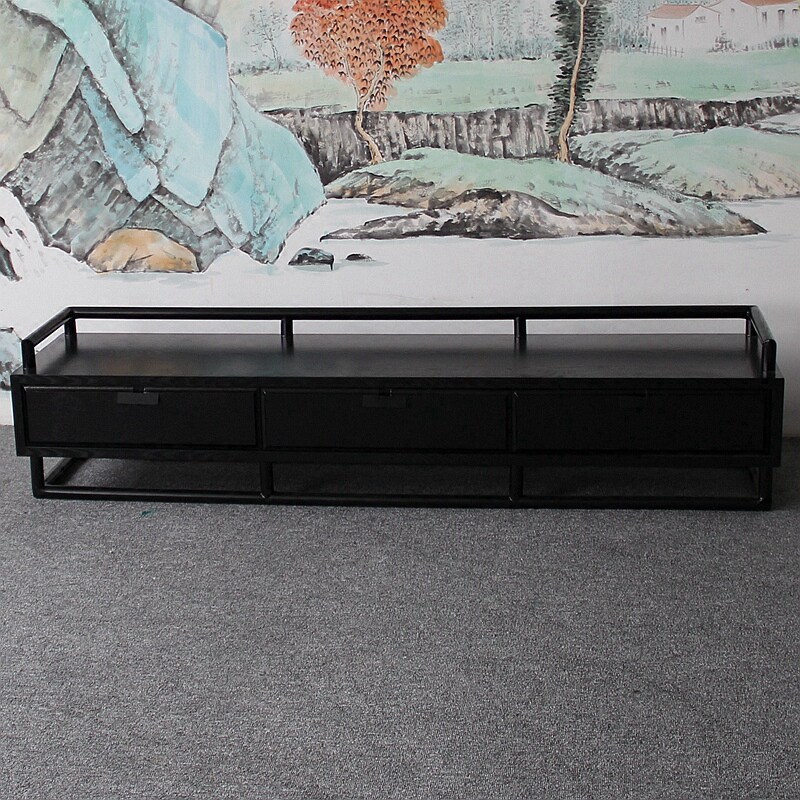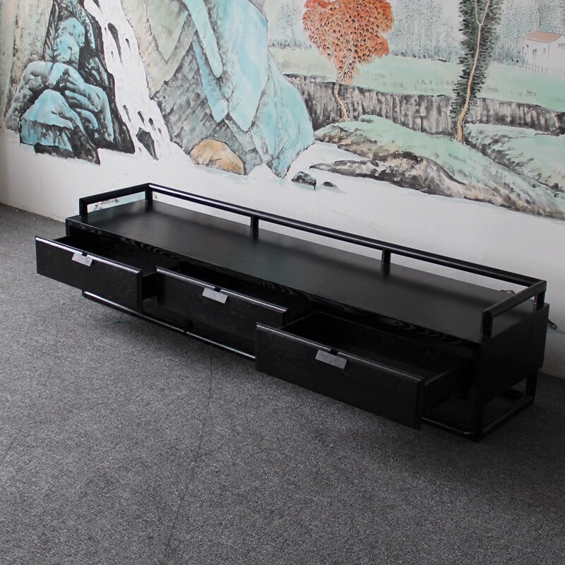 New Chinese TV Cabinet Living Room Floor Cabinet Retro Low Cabinet Solid Wood Locker Ash Model Room Furniture Customization