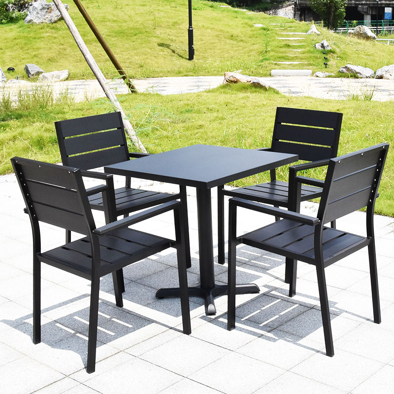 Outdoor plastic wood tables and chairs three-five-piece set outdoor courtyard leisure open-air balcony cafe anti-corrosion waterproof table and chairs