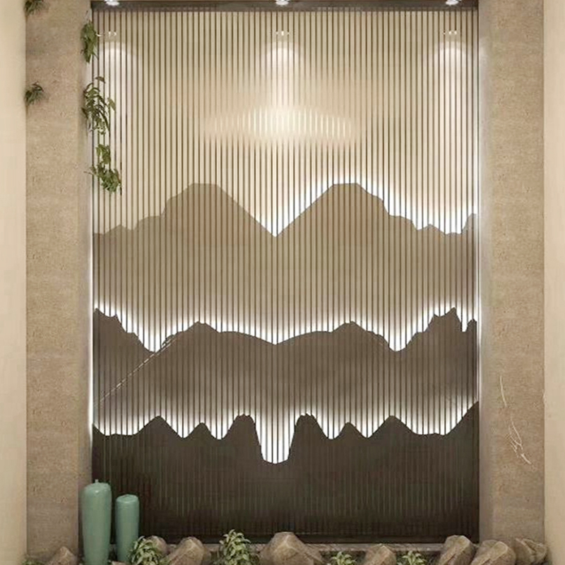 Stainless Steel Screen Xuanguan Living Room Compartment Background Wall Art Fake Mountain Hotel Clubhouse Display Customized various styles