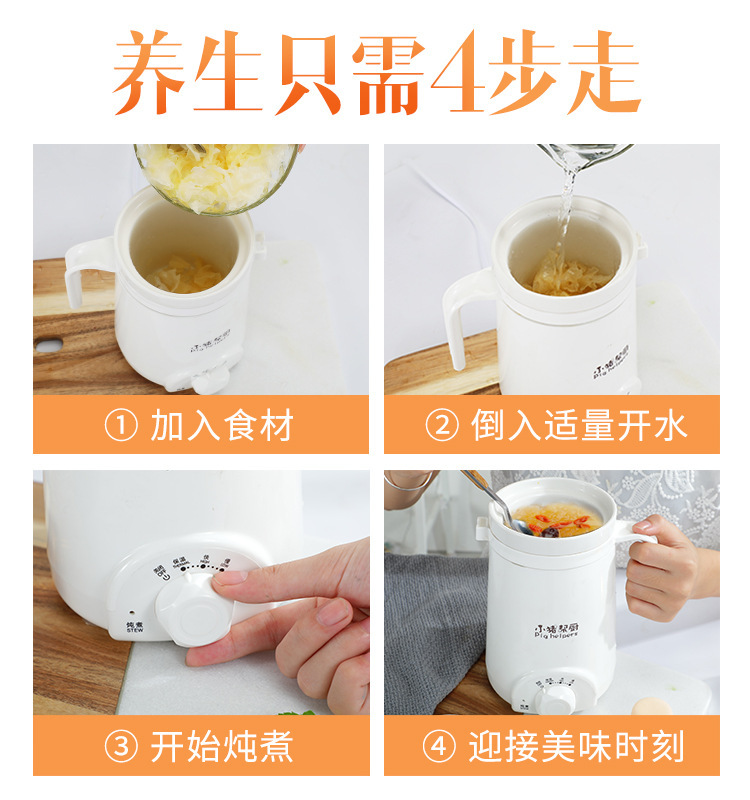 110V Cross-border Mini Electric Stew Cup American Japan Household Health Cup Mini Anti-scalding Portable Heating Cup