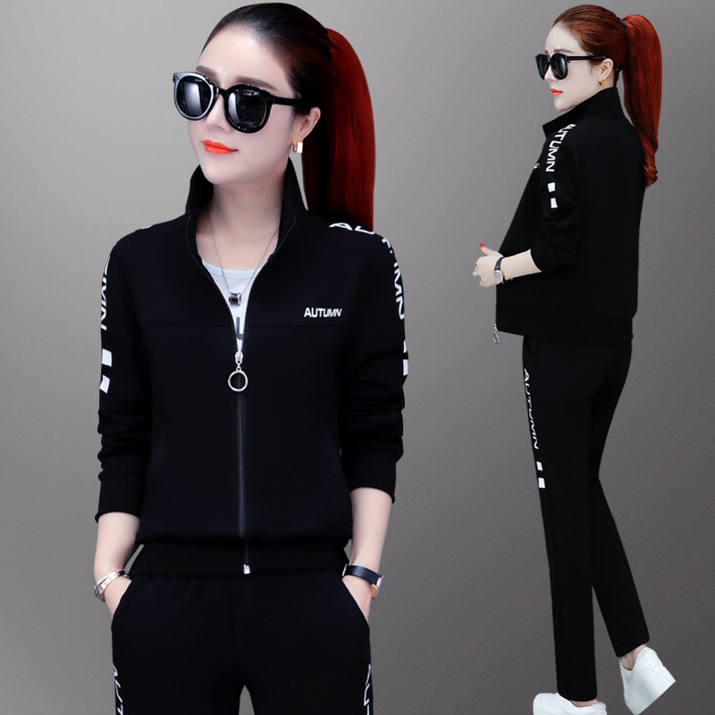 Sports suit women's spring 2023 new fashion loose and thin stand-up collar casual sweater trousers three-piece cotton