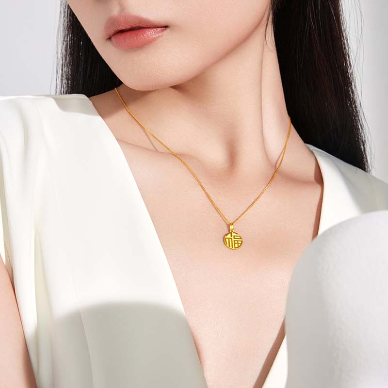 Chow Tai Fook Jewelry Guochao Fu Zi Round Card Fu Brand Full Gold Gold Pendant Price F221900