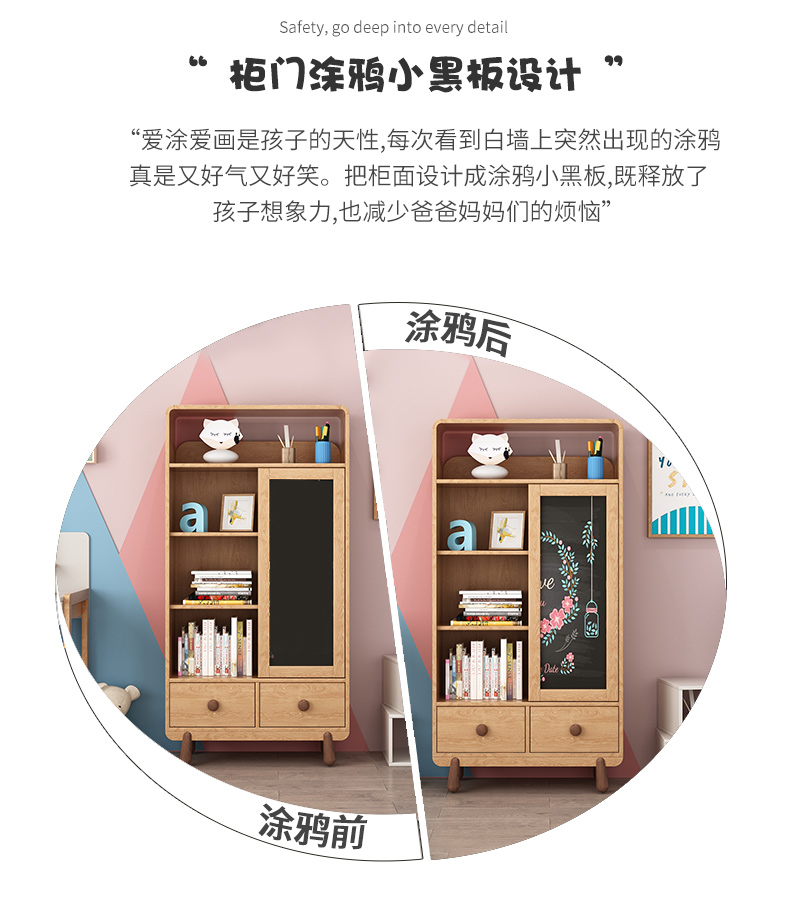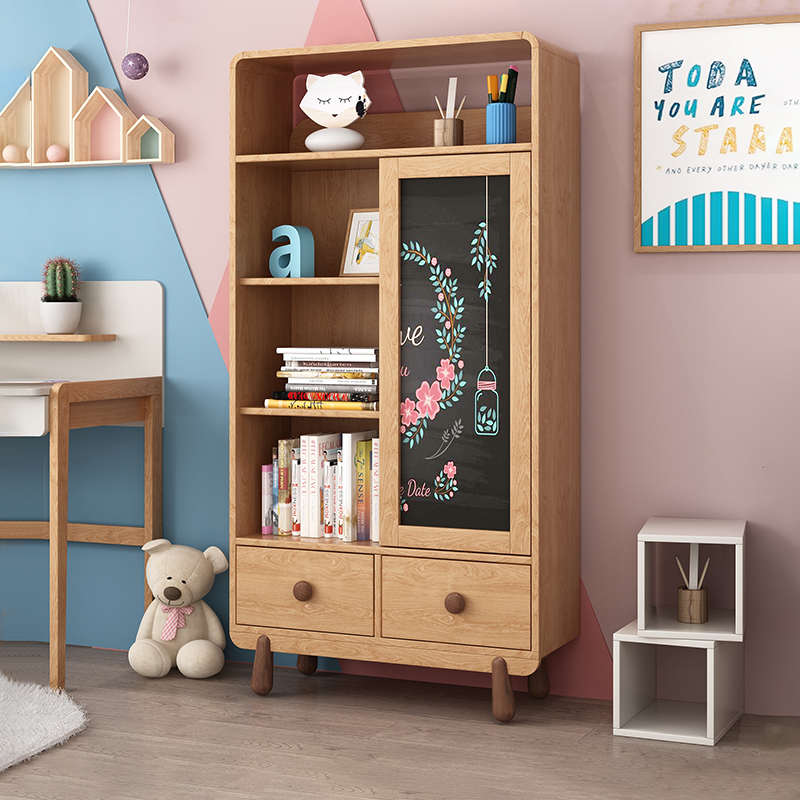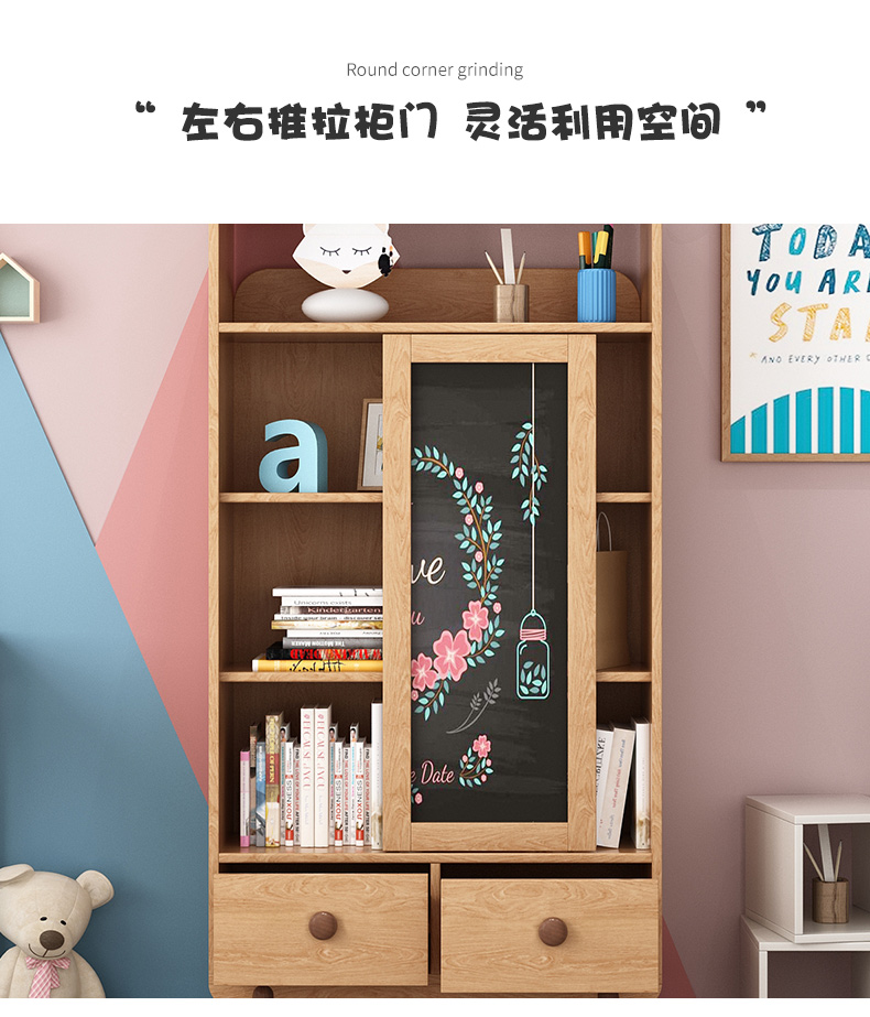 Star House Children's Solid Wood Bookcase with Blackboard Simple Modern Shelf Student Bookshelf Bedroom Locker