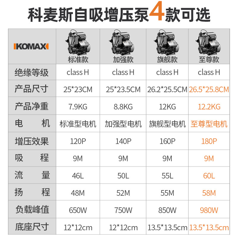 (Standard) Electric self-priming booster pump (reinforcement) Electric self-priming booster pump (flagship) Electric self-priming booster pump (Supreme model) Electric self-priming booster pump (extreme model) Electric self-priming booster pump (digital display intelligent Standard model