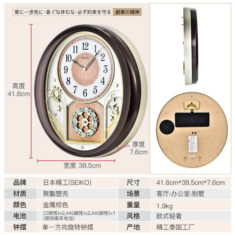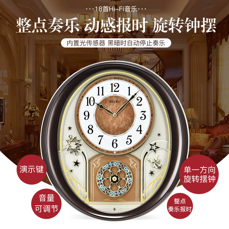 SEIKO Japan Seiko All-Clock Music Bell Bedroom High-end Wall Clock European Atmospheric Music Wall Clock