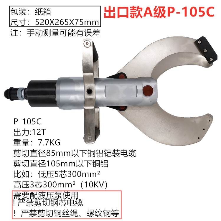 Two-type off-duty flashlight movable hydraulic cable scissor-cut pliers opening high-pressure sheathed CPC-6585105120C