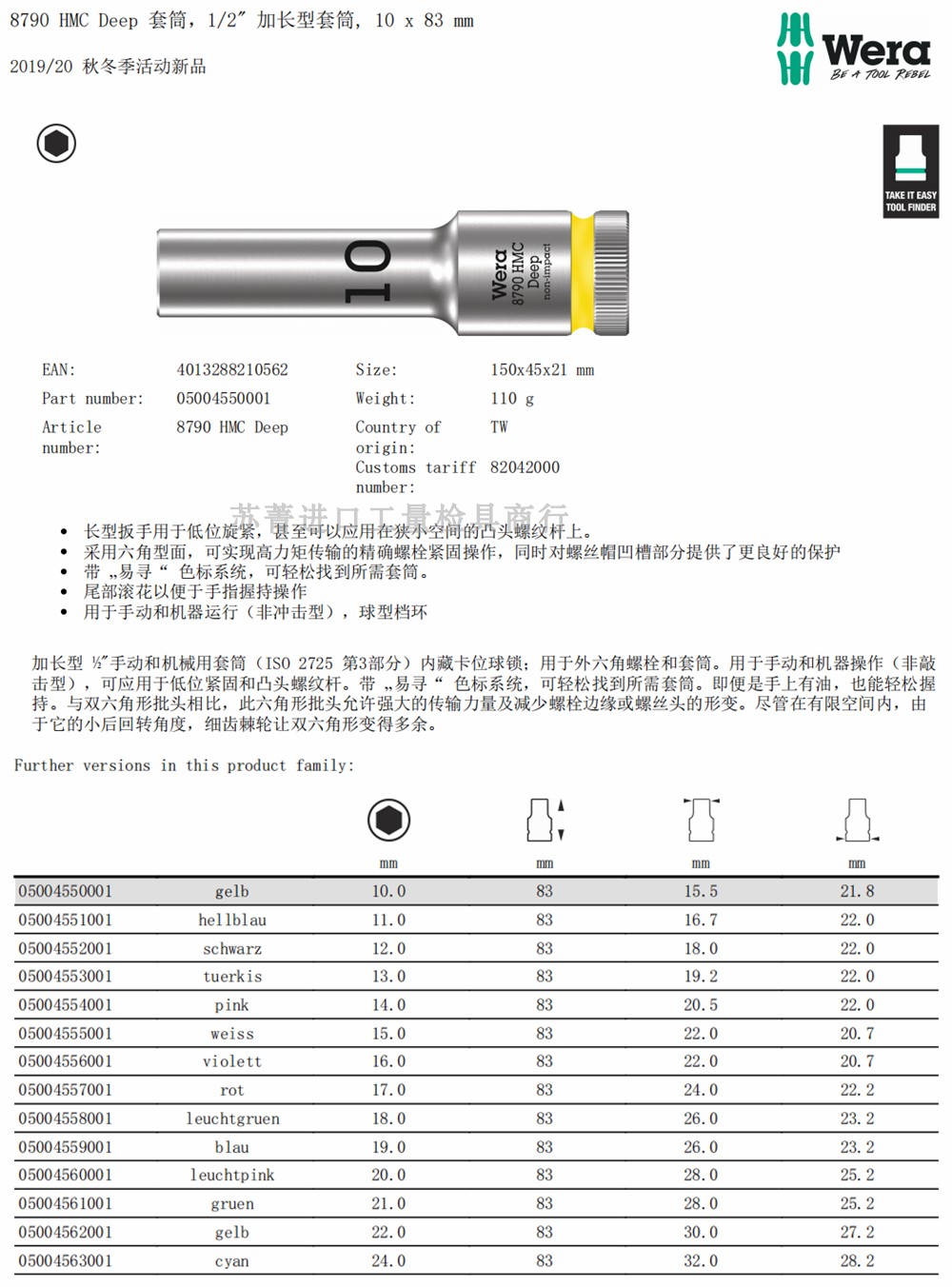 German Wera Vera 8790 HMC Deep Dafei deepened and extended 1 2 nut hexagonal sleeve head