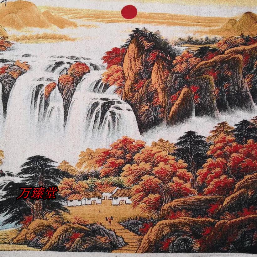 Mountain view banners antique made of old brocade silk delicately embroidered Su embroidery machine embroidered without framed landscape New listing