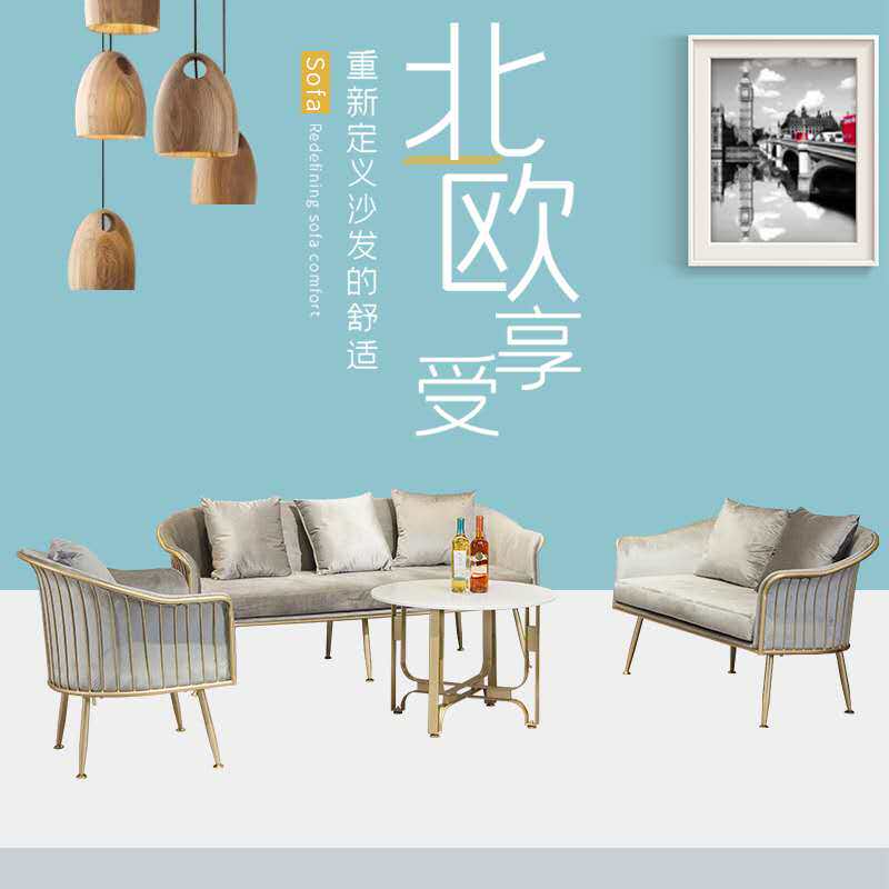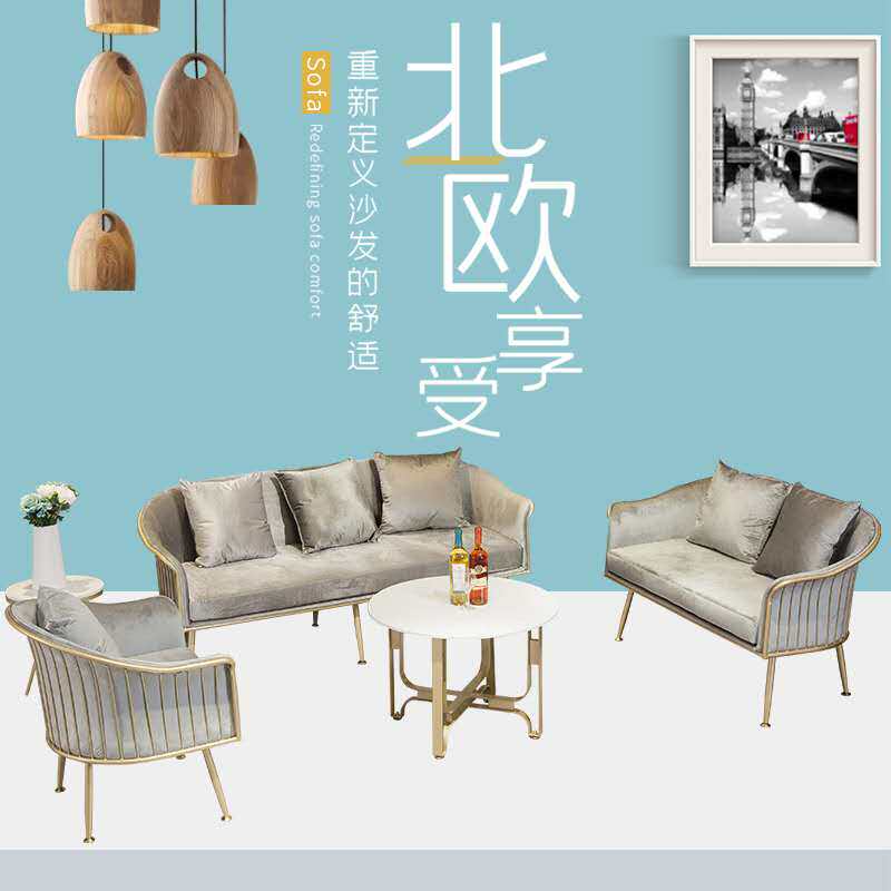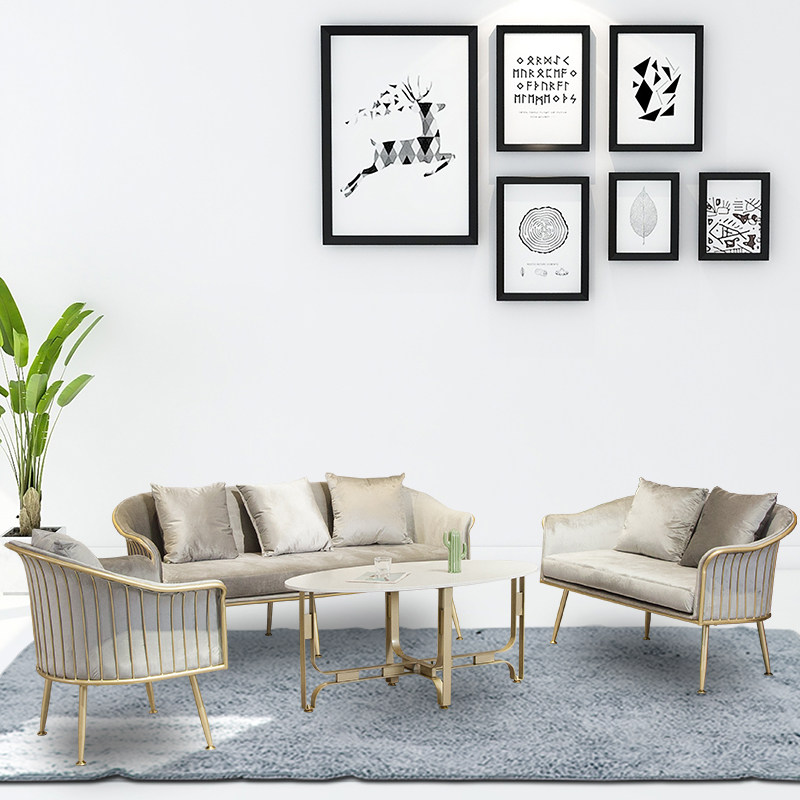 Sofa Nordic simple small apartment net red light luxury fabric clothing store beauty salon coffee table combination iron postmodern