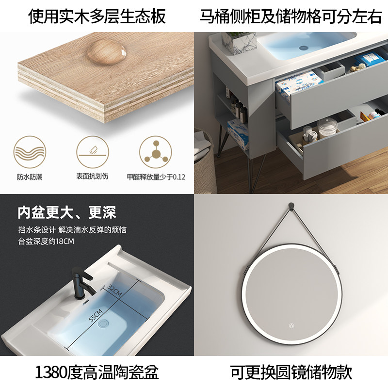 Nordic Bathroom Cabinet floor-style modern toilet wash table wash basin cabinet combined smart mirror cabinet bathroom bathroom