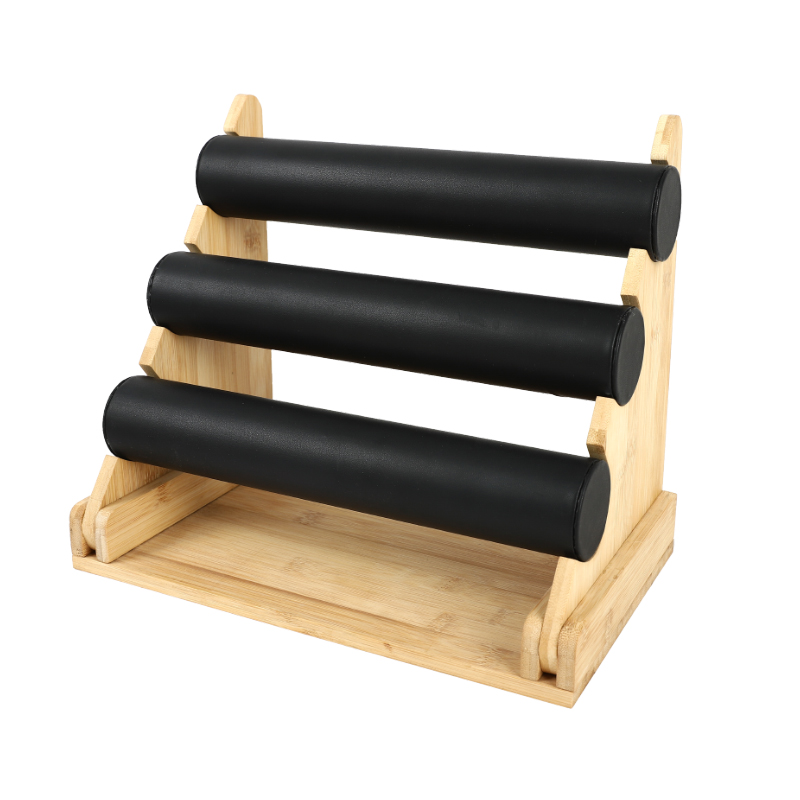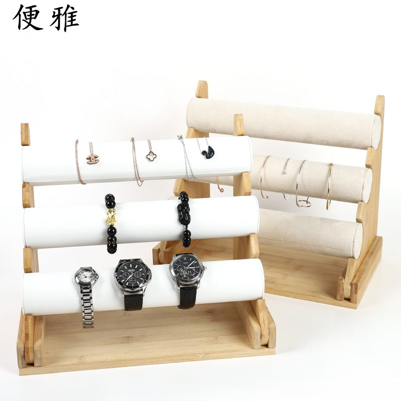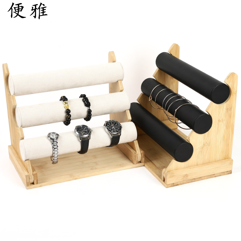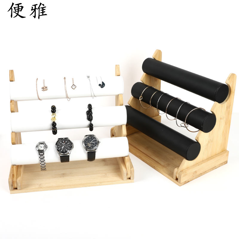 Bamboo-wood detachable three-storey bracelet frame black leather bamboo and wood detachable 3-layer bracelet frame white leather bamboo and wood can be removed with three layers of bracelet frame rice-velvety