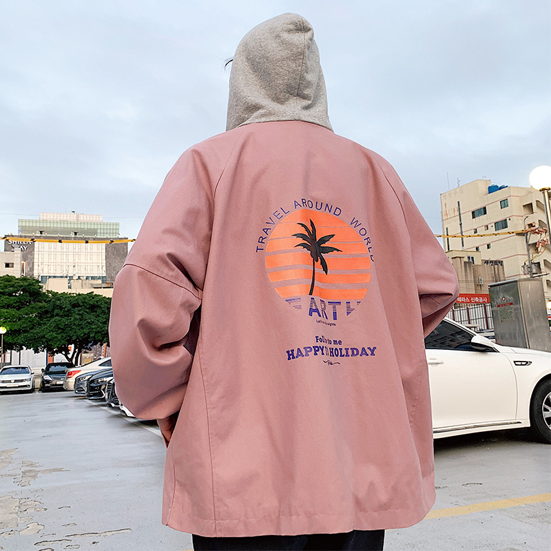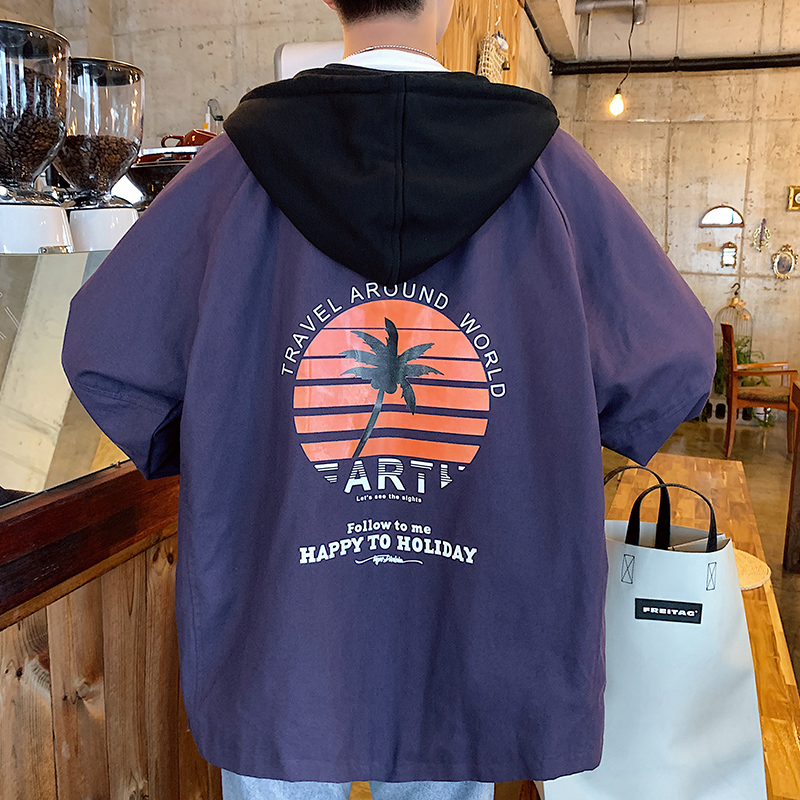 American-style fake two-piece hooded jacket men's design sense niche original design youth jacket oversize top