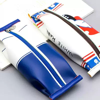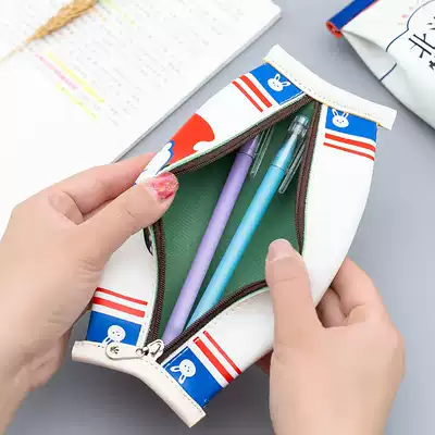 Creative pen bag female simple cute Korean version of Cartoon personality stationery bag college students large capacity girl heart ins tide funny pen box male pupils pencil box white rabbit net red snack milk box
