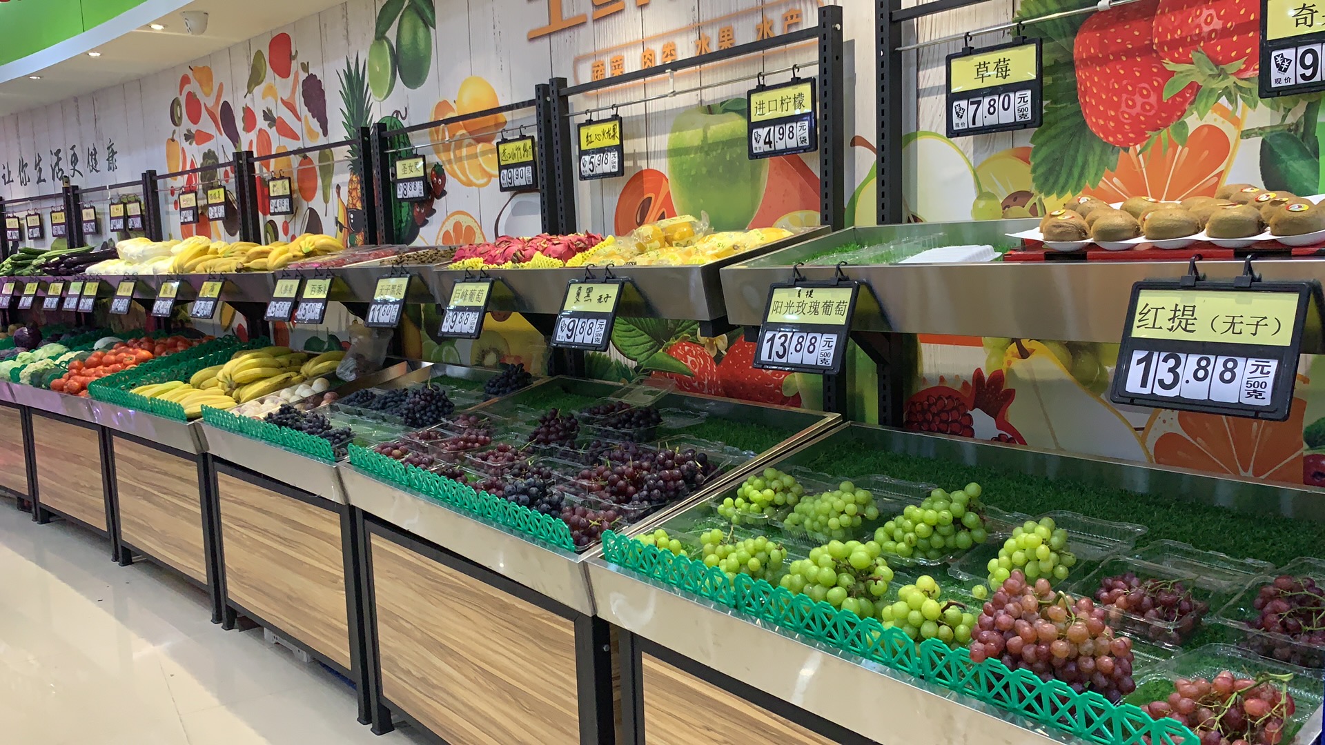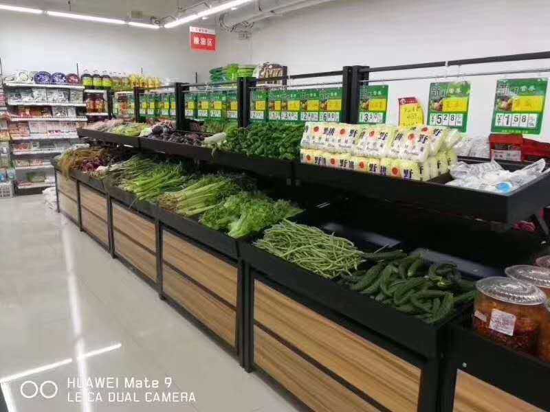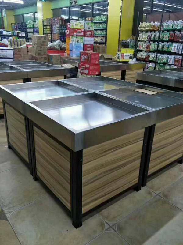 Supermarket vegetable shelves Fresh shop vegetable shelves Yonghui fruit and vegetable rack stainless steel vegetable shelves in the island cabinet