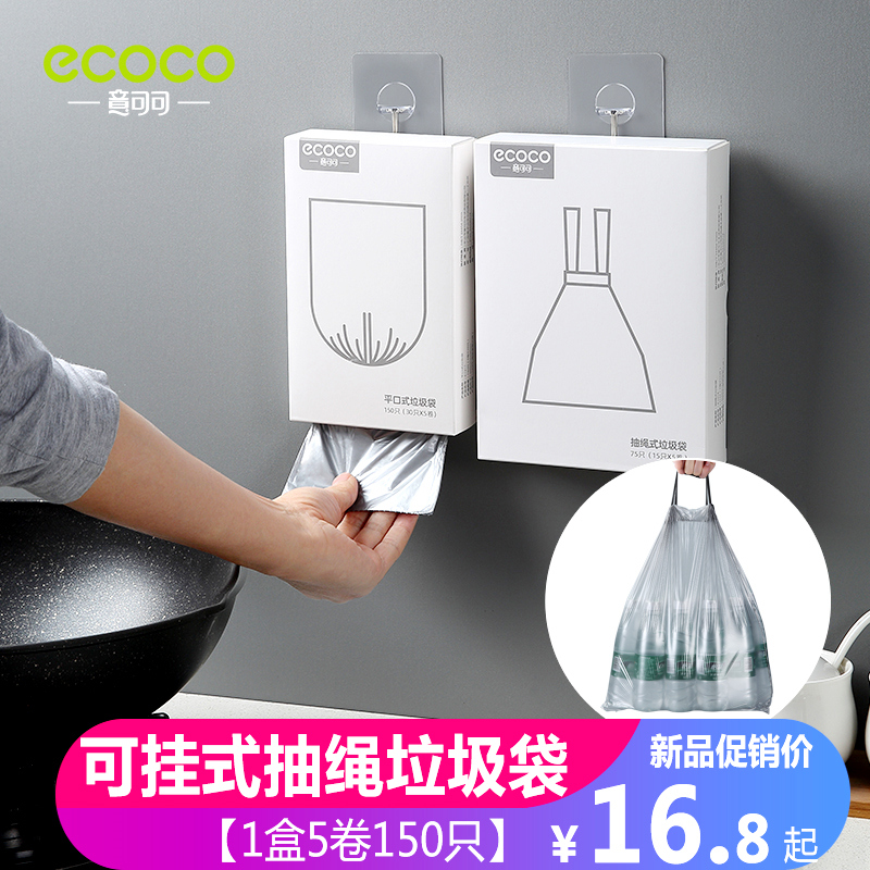 Garbage bag household thickened portable kitchen flat vest drawstring automatic closing medium and large plastic bag