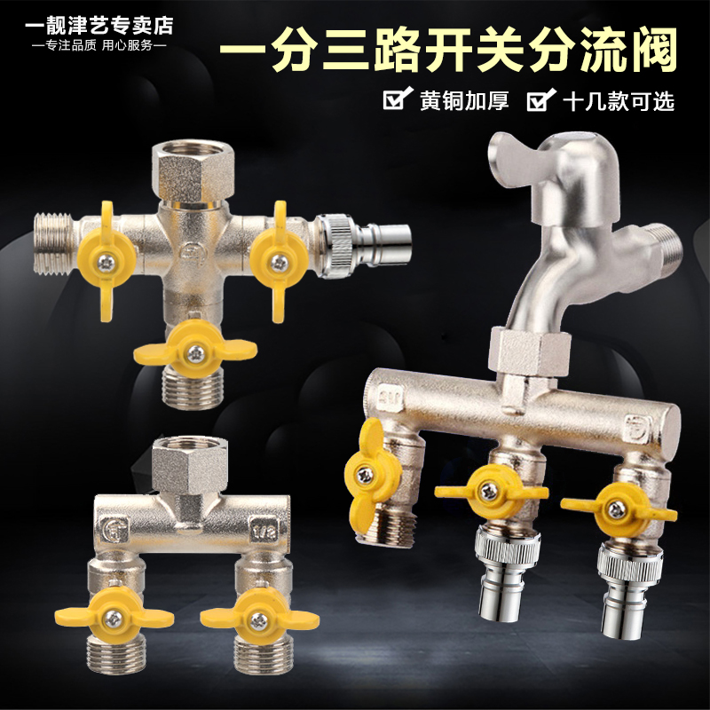 Washing machine faucet one in two out split water separator Three-way four-way valve 4 points 6 points conversion joint