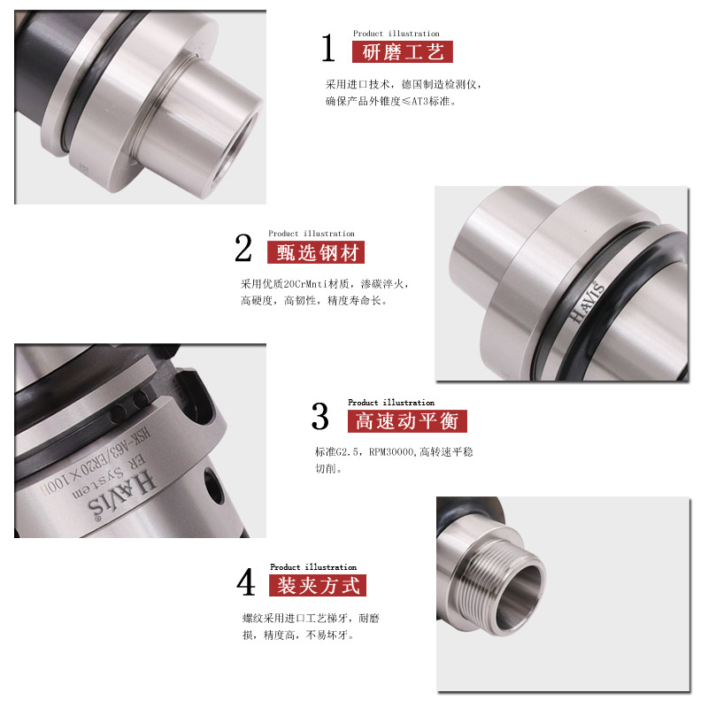 Taiwan HAVIS engraving machine milling shank HSK63F-ER16 20 25 32-70 100 high speed woodworking shank