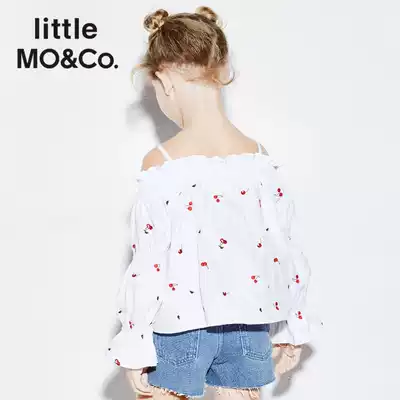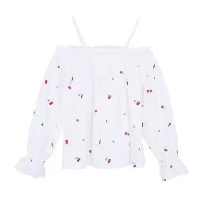 littlemoco Autumn Girls Top Cotton Suspender strapless printed Cherry ruffle sleeve top Ole