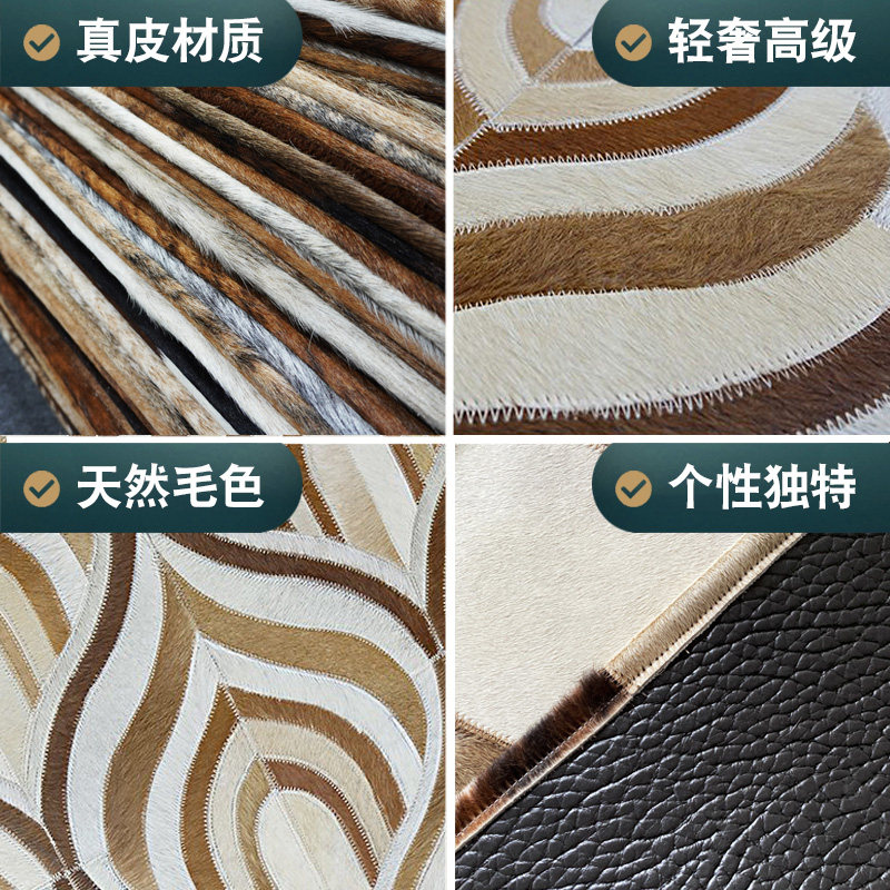 Cowhide Mosaic Rug Light Luxury Style Living Room Sofa Cushion Horse Hair Bedroom Bedside Blanket Abnormal Spot Free Cleaning and Easy Care