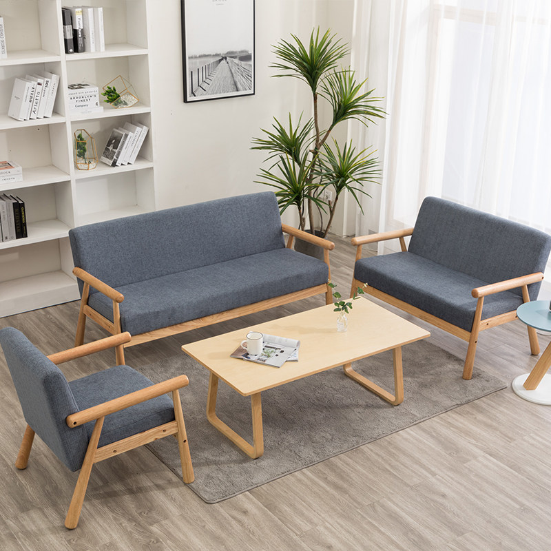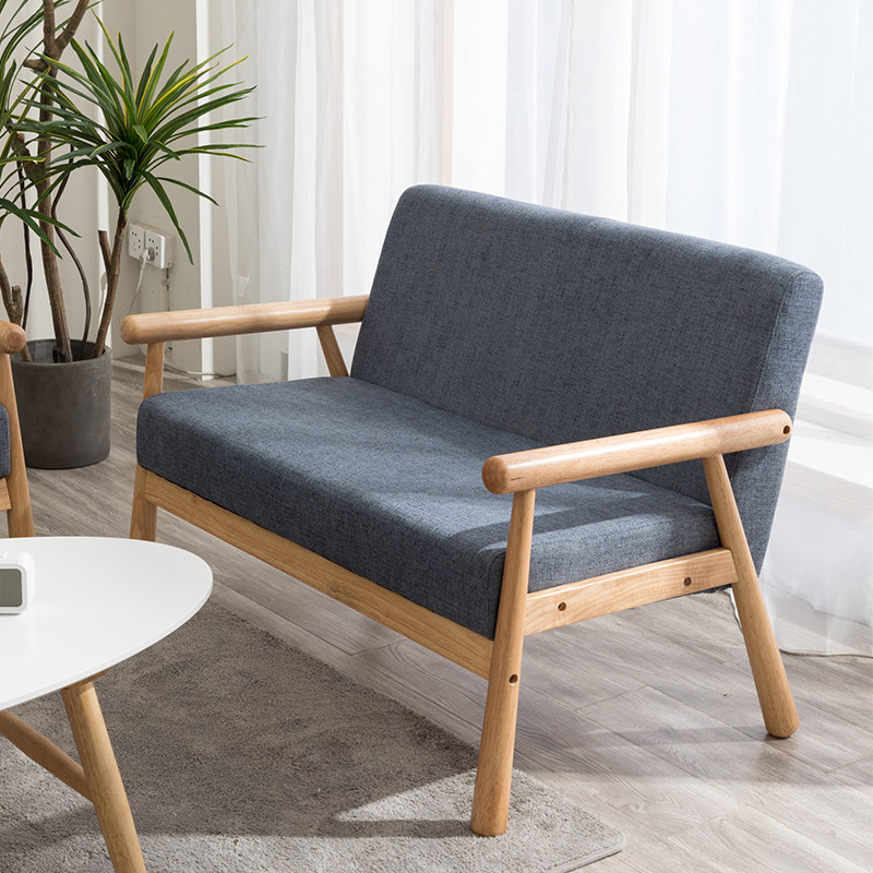 Small apartment living room room famous solid wood small sofa rental room double three people sofa lazy chair economical