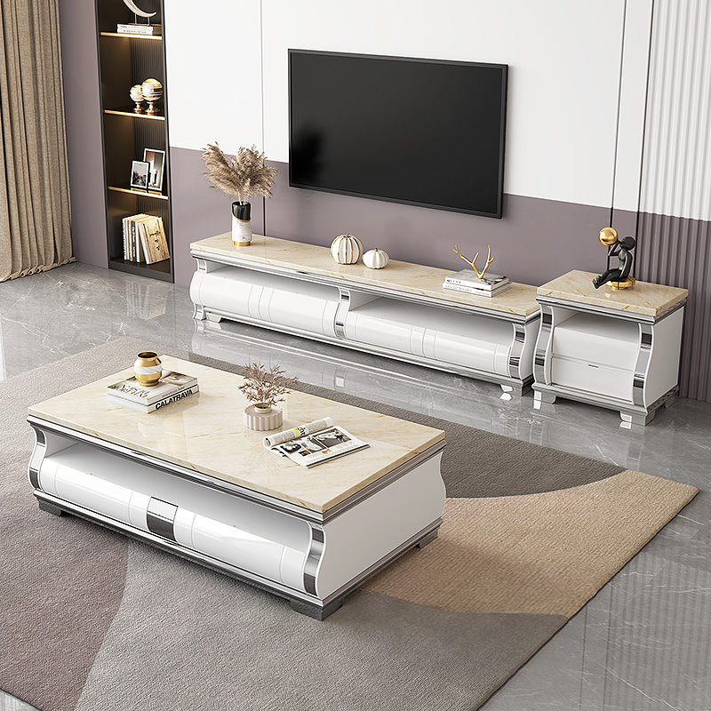 Marble TV Cabinet Coffee Table Combination Furniture Set Modern Minimalist Small Apartment Living Room TV Cabinet Floor Cabinet