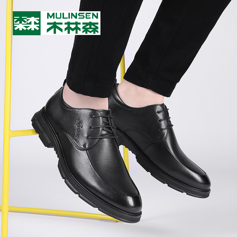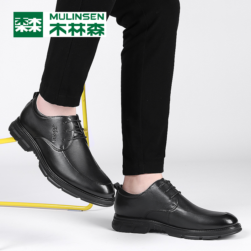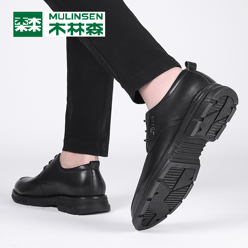 Mulinsen men's shoes 2022 new leather men's business casual leather shoes men's British first layer cowhide heightening shoes