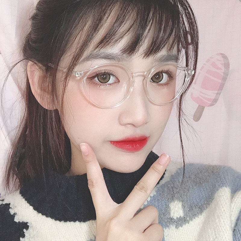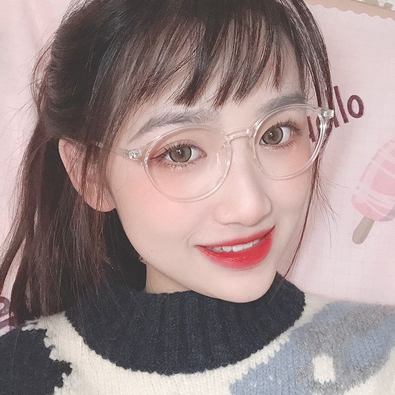Xiaohongshu with the same transparent frame glasses frame women can be equipped with myopia eye frame flat light net red with the same big round face