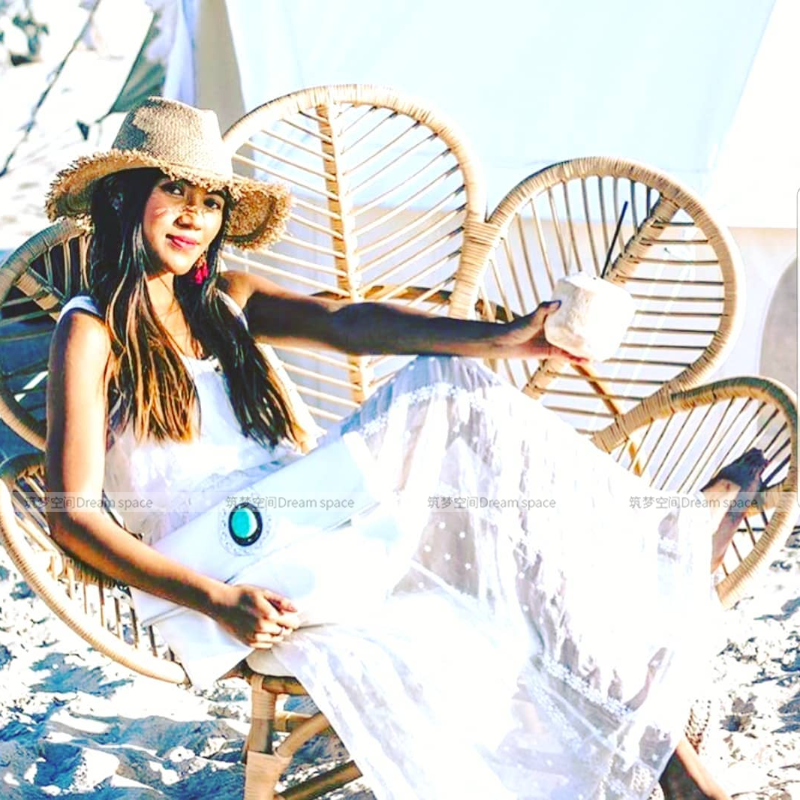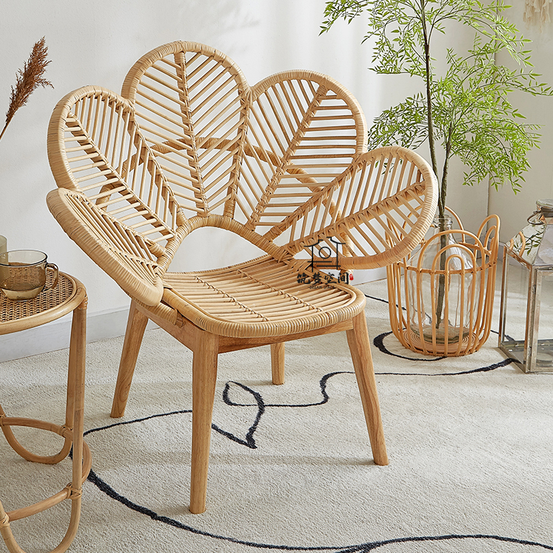 Pure Real Vine Woven Flower Chair Solid Wood + Real Vine Side Flower Chair Optional Hitch Tea Table (Strip Steel Glass) 2 Pure Vines Chair 1 Tea Table Color Custom Tiffany Blue