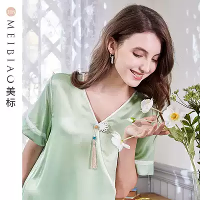 American19 Mummi Heavy Short Sleeve Silk Pajamas Set Women Spring Summer Sexy 100% Silkworm Silk Home Clothing