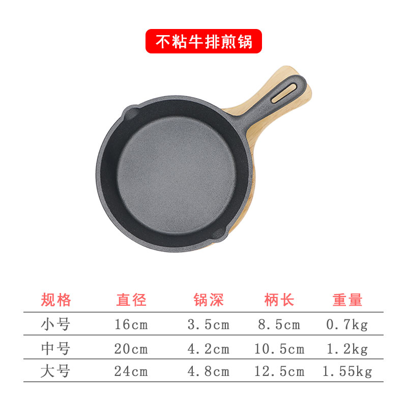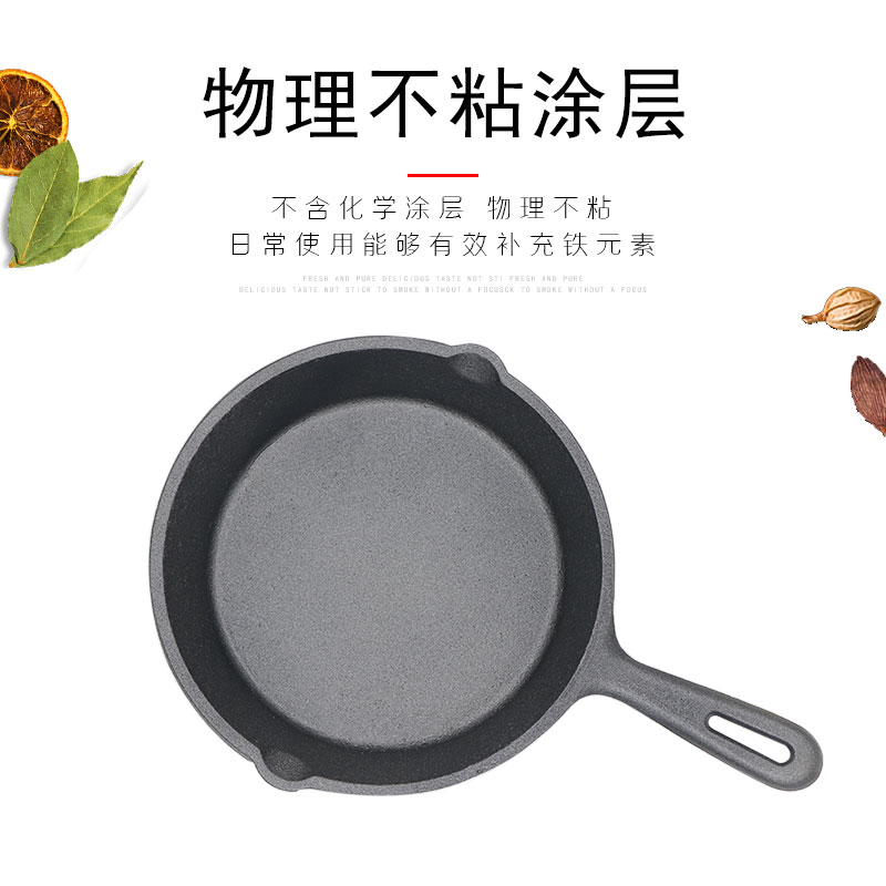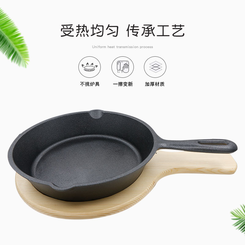 Cast iron frying steak with single handle frying pan grill frying egg flat bottom pan Western dining steak iron plate induction cookware not pan-pan commercial