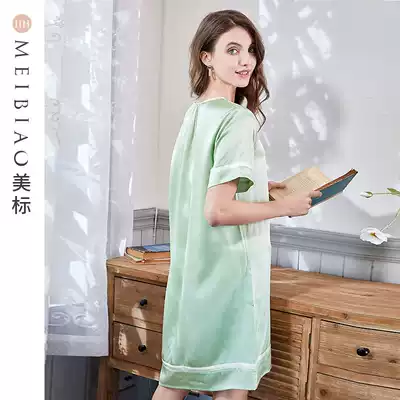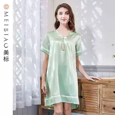 American19 Momi heavy silk night dress Women's spring and summer Panhua 100%Mulberry silk pajamas sexy silk home clothes