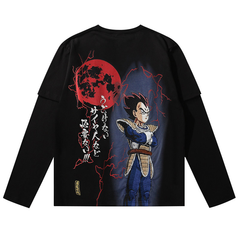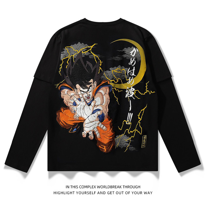 Seven Dragon Beads Rework Embroidered Men's Fake Two Cards Caracarote Cartoon Super Seater Long Sleeve Sun Epiphany T-shirt