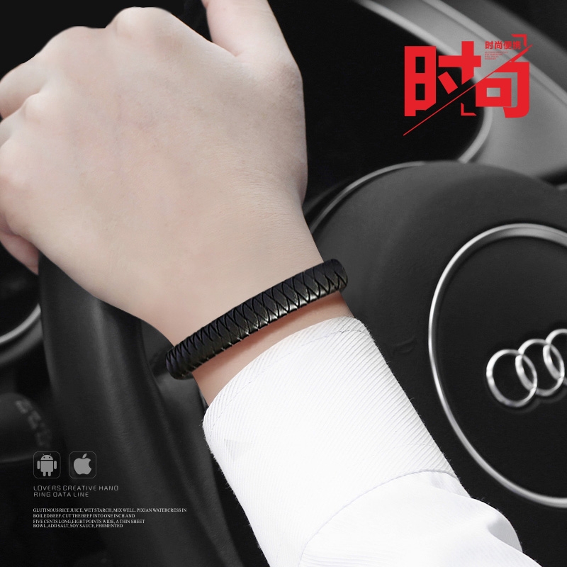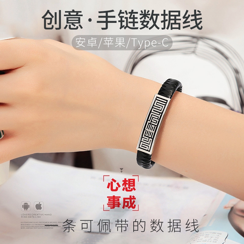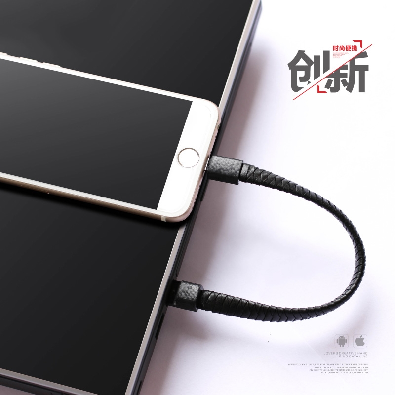 (headlayer cow leather) Fast-charge flasher hand-in-hand ring portable online red data line applicable Huawei apple short oppo mobile phone Android type-c charging line Vivo personality male and female