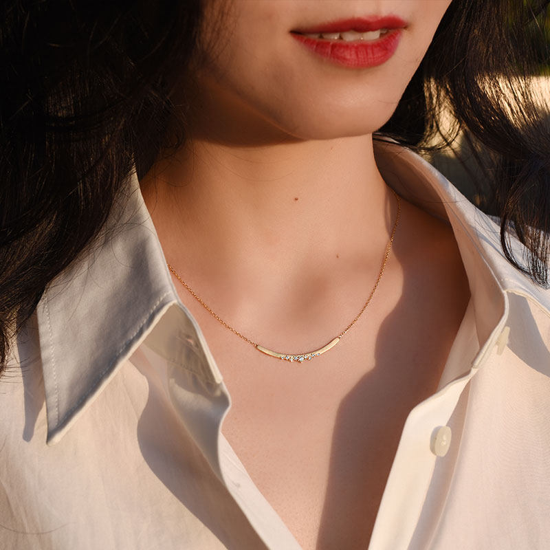 Wing | Star Smile 18k Gold Diamond Smile Necklace 0 10ct Advanced Frosted Gold Original Design
