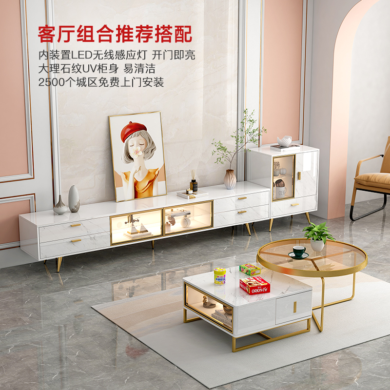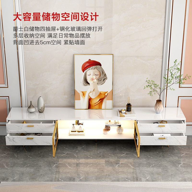 Upgrading the table surface bright light rock plate (2 2 m TV cabinet) Upgrade table surface bright light rock plate (1 8 m TV cabinet) 0 6 m Dining Cabinet Bright Light Jazz White Rose Gold Upgraded surface bright light rock