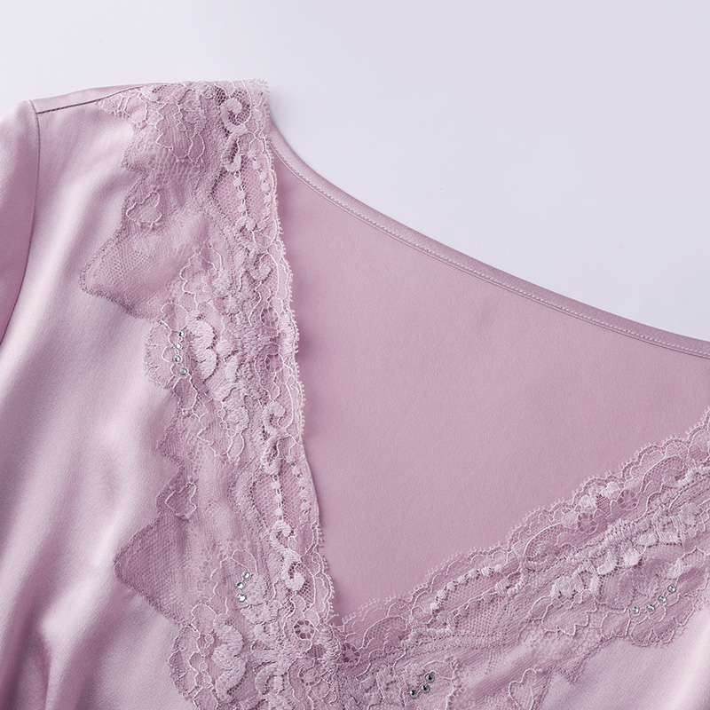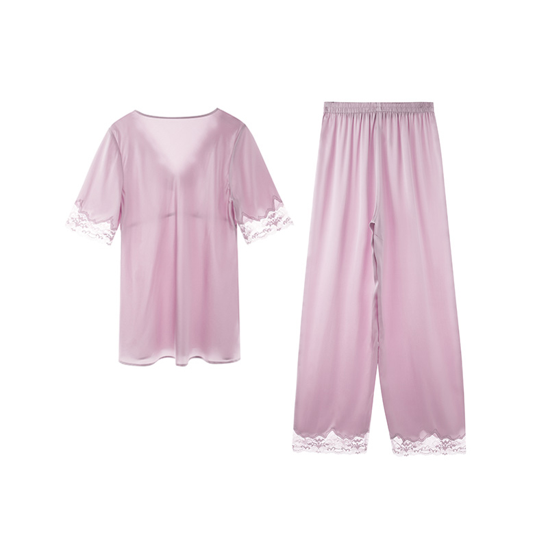 Manneffin V collar short sleeve long pants suit mulberry silk family dress lady lace side up for 20310607