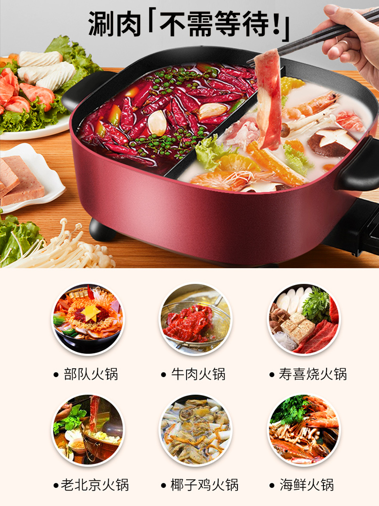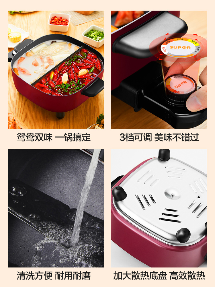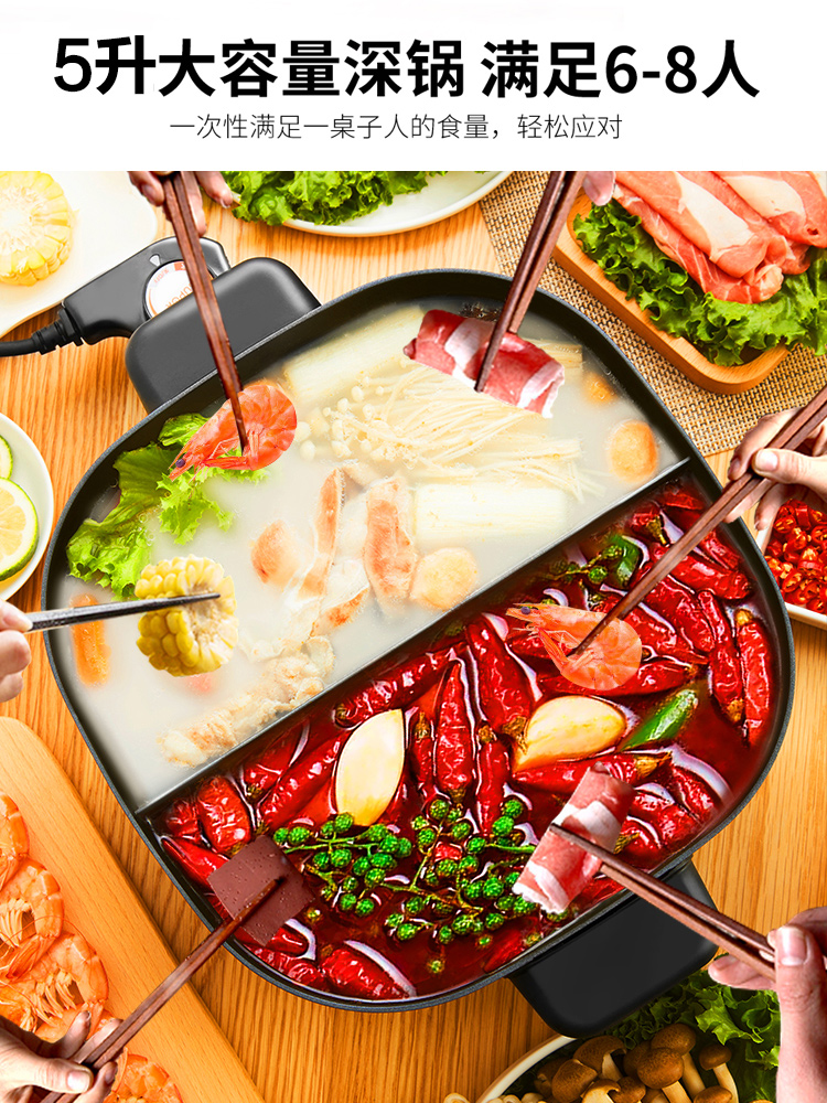 Supoir Yuanyang electric hot pot pan Home multifunction plug-in electric heat pot quick cooking pot 3 electric pan integrated pan 2-8 people