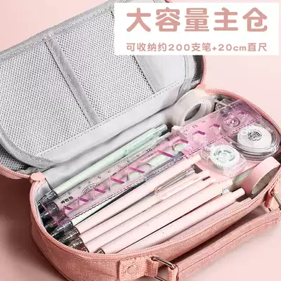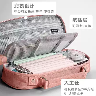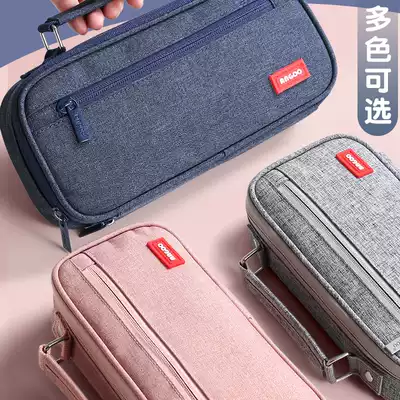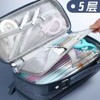 Ankou pen bag large capacity female simple ins Net red sun series Korean version of multi-function canvas retro style junior high school students art cute pencil box multi-layer canvas stationery box partition layer