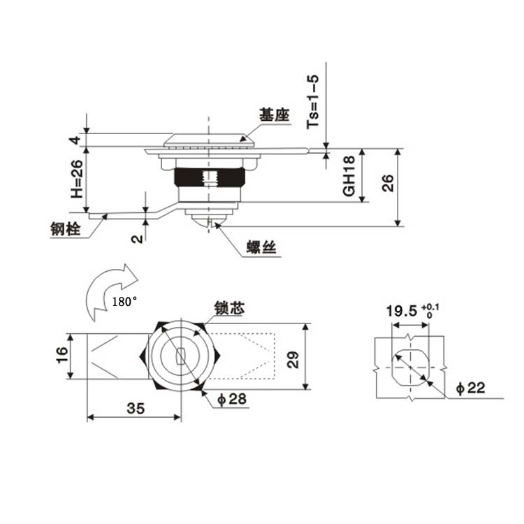 Haitan cylindrical lock distribution box lock mechanical lock switch cabinet lock door lock instrument meter lock MS407