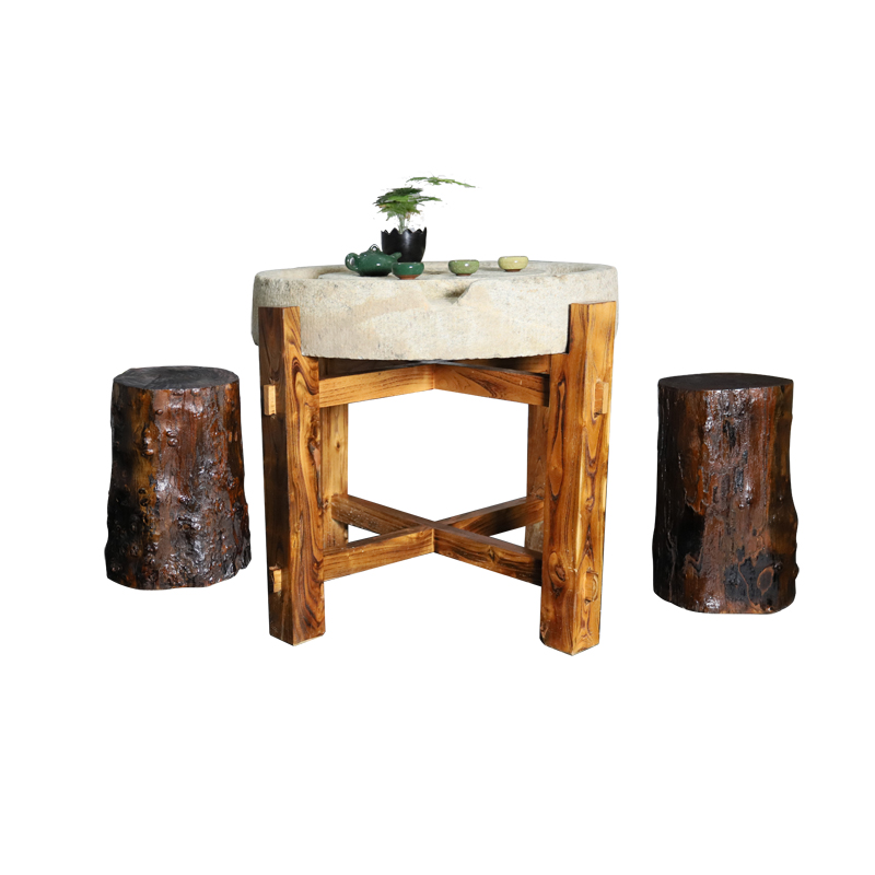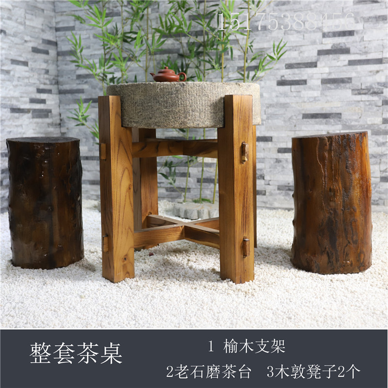 Stone Mill Tea Tray Tea Sea Old Millstone Tea Table Old Stone Instrumental Tea House Tea House Tea Tea Tea Set Stone Trough Wood Frame Bracket Grinding Sheet Swing Piece
