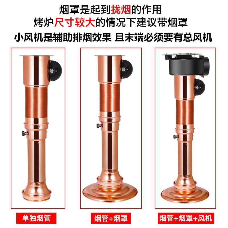Copper smoke pipe Single tube copper smoke pipe + smoke cover copper smoke pipe + smoke cover + fan black pipe Single pipe black pipe + smoke cover Black pipe + Smoke cover + Fan half black half silver Single pipe half black half silver + smoke cover half black half silver + smoke cover + fan half copper half silver single pipe half copper half silver + hood half copper half silver + hood half copper half silver + hood + fan silver pipe Single pipe silver pipe + hood silver pipe + hood silver pipe + hood + fan black + hood + Korean fan copper color + hood + Korean fan silver + hood + Korean fan semi-copper + hood + Korean fan