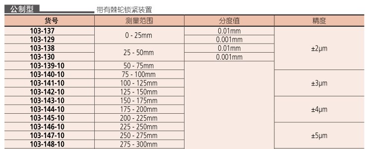 0-25mm 103-137 0 01mm25-50mm 103-138 0 01mm50-75mm 103-139 0