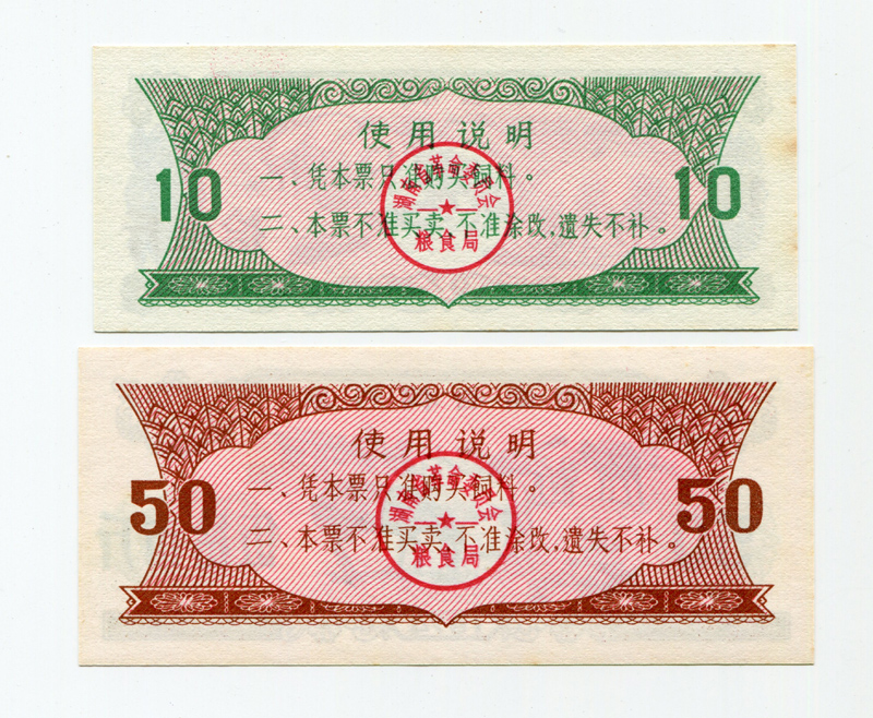 (Fidelity) The whole new 1974 "Feed Ticket in Hunan Province" has a full set of two Spotted Grain tickets.