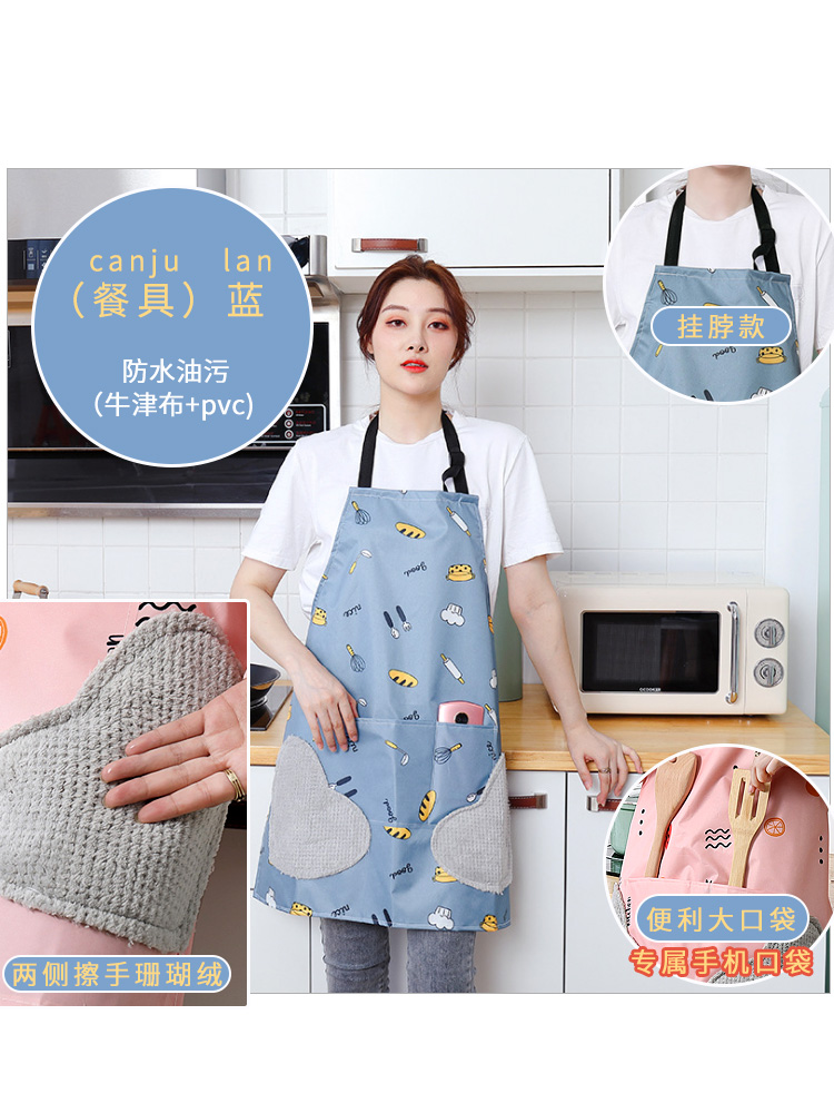 Erasable Kitchen Apron Women's Fashion Cute Day Ensemble Korean Version Home Kitchen Cook Waterproof Greaseproof Work Hood Garment
