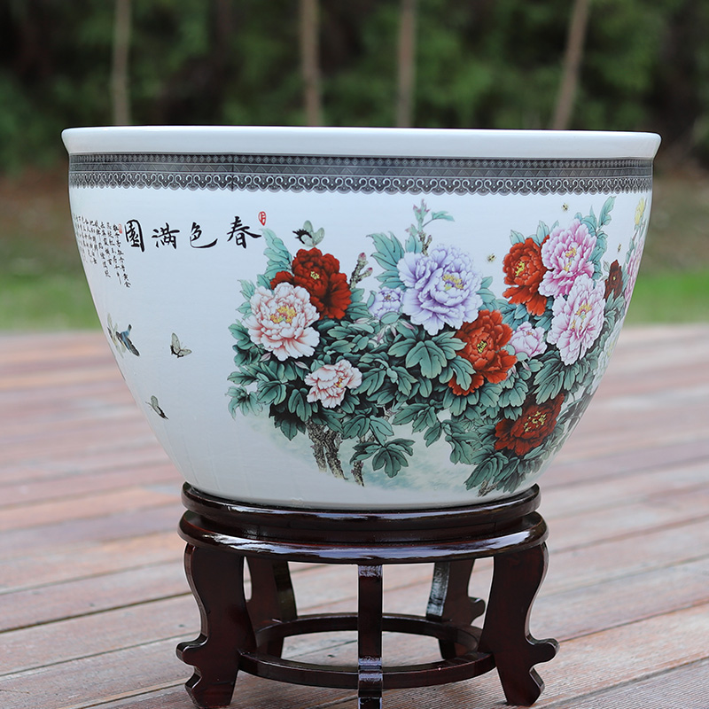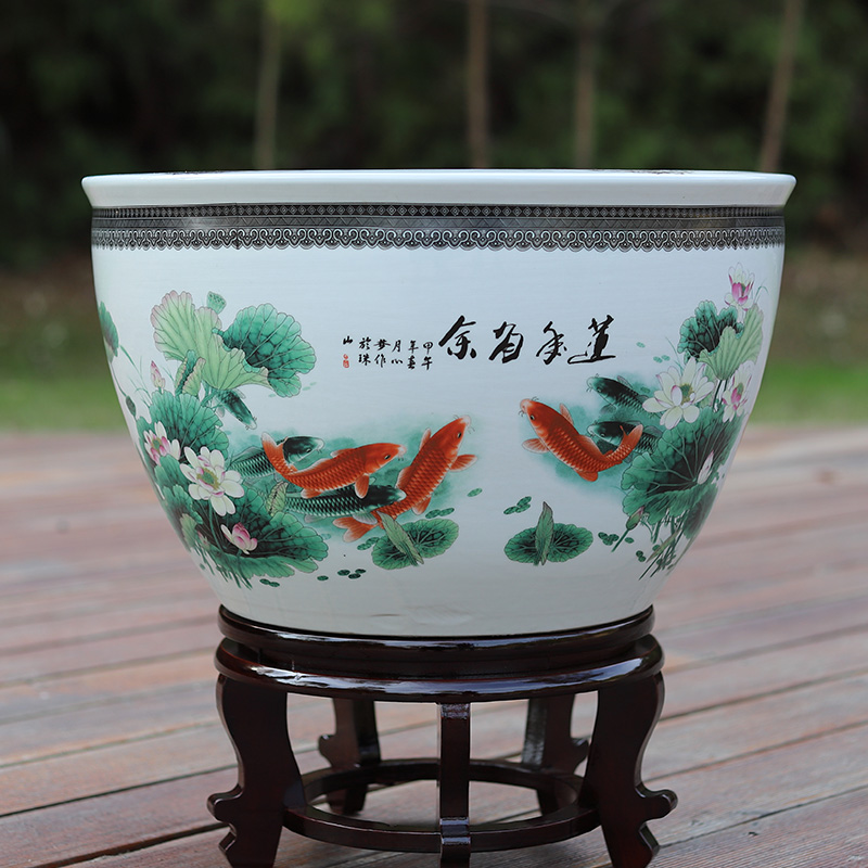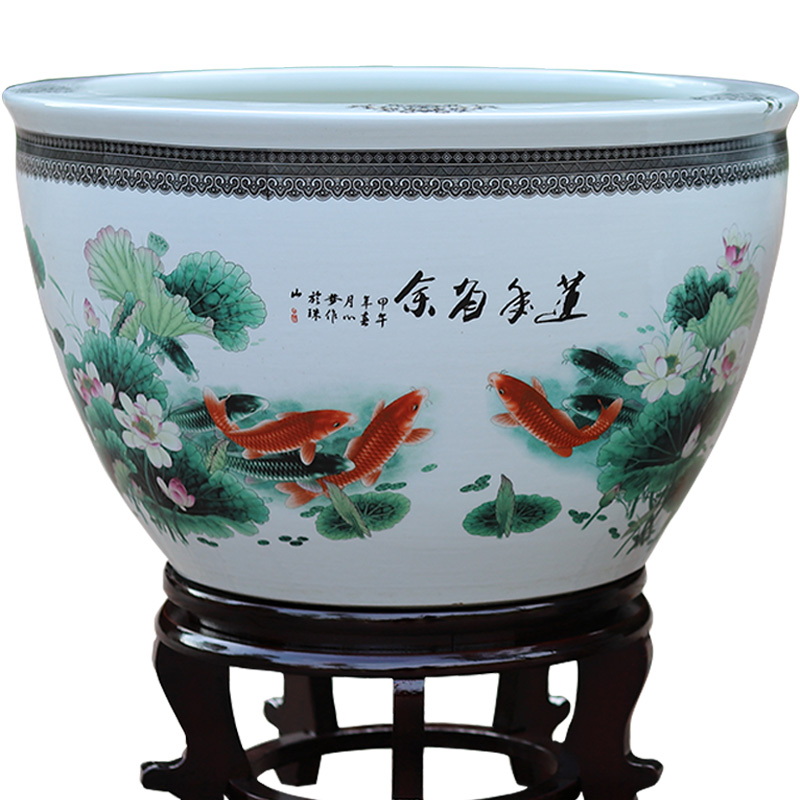Jingdezhen Ceramic Flower Pot Cylinder Water Lily Bowl Lotus Pot Lotus Cylinder Courtyard Waterscape Feng Shui Cylinder Increase Goldfish Tank